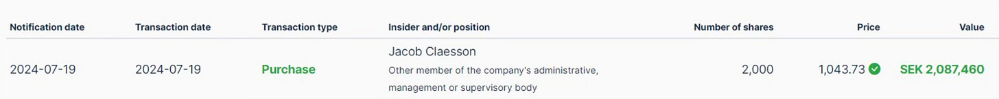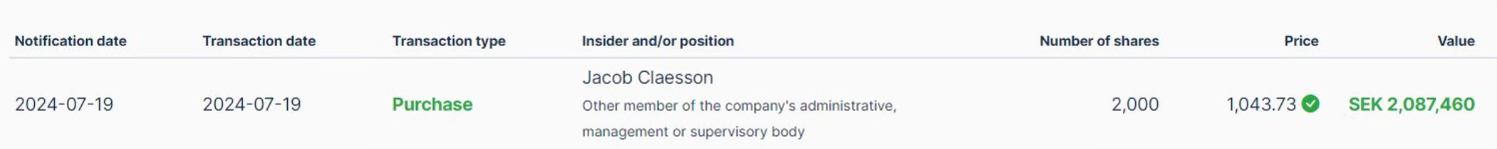 While the quarter was overall weaker than expected, I do not believe this impacts the long-term thesis. The market reaction could present a buying opportunity given the low valuation. On Friday, Evolution's North America CEO, Jacob Claesson, took advantage of this opportunity and bought 2,000 shares.