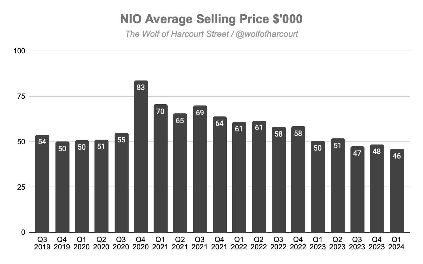 My Perspective: Q1 was really poor, but Q2 already looks far more promising. NIO has delivered over 36,000 vehicles, which is already more than Q1 with one month to go. The continual downward trend in average selling prices is the real concern. Based on the Q2 guidance, it appears that this could drop even lower.