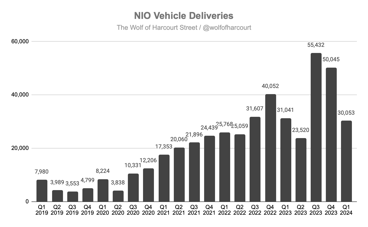 The slowdown in China resulted in deliveries of pure electric and plug-in hybrid cars falling by 31% quarter-on-quarter to 1.76 million units in Q1, according to CPCA data. Competitor BYD slashed prices of nearly all of its cars by 5%-20% since mid-February. Since then, the prices of 50 models across a range of brands have dropped by 10% on average, according to Goldman Sachs. Price wars are never a good thing.