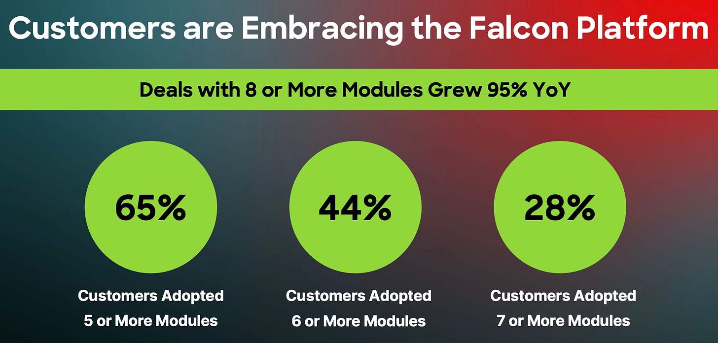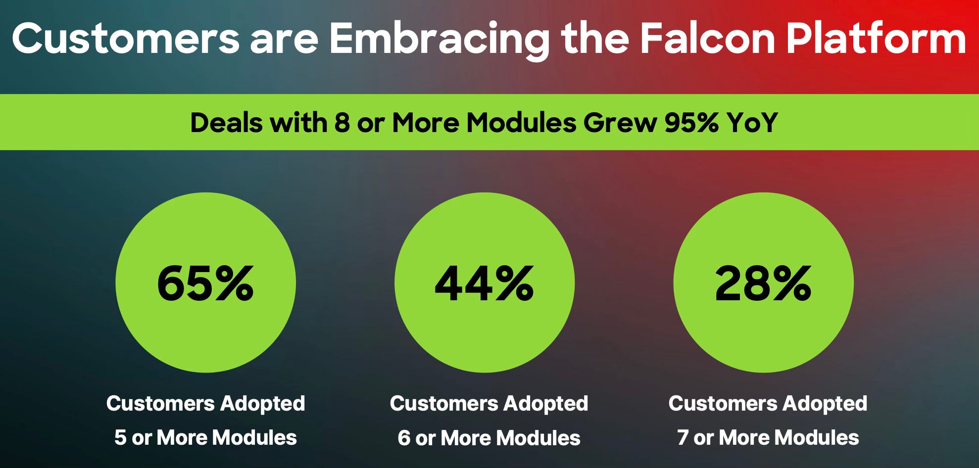 The number of deals involving cloud, identity, or Falcon Next-Gen SIEM modules more than doubled YoY.