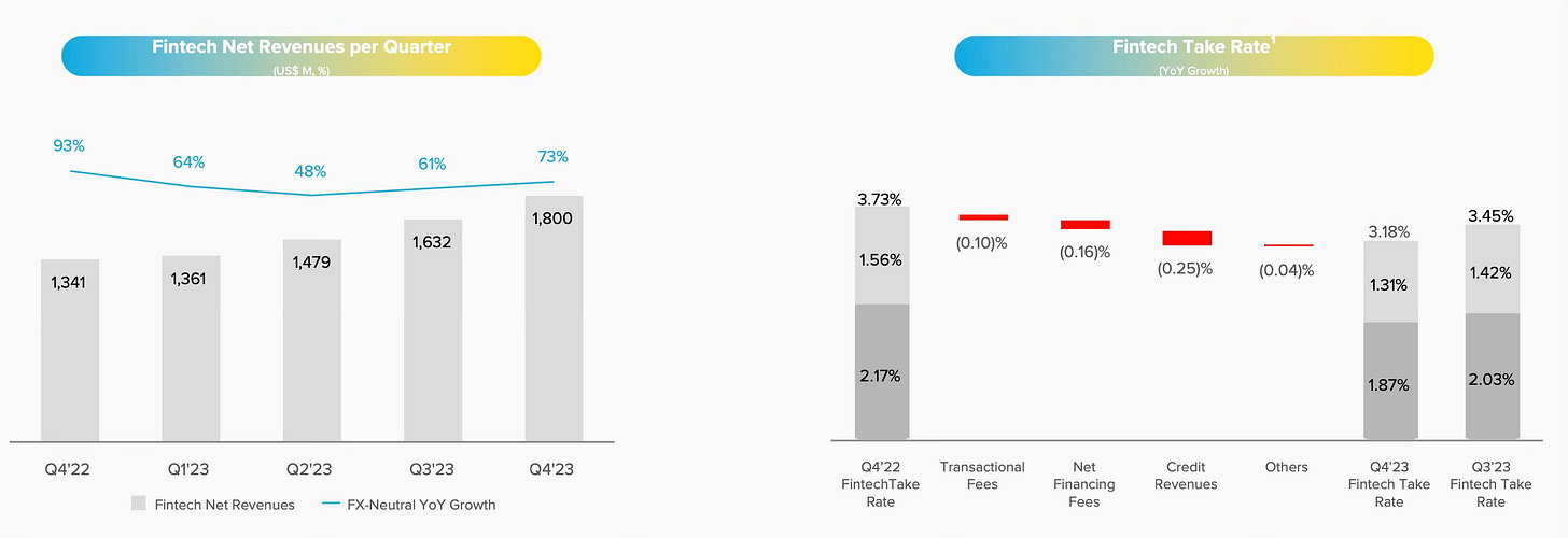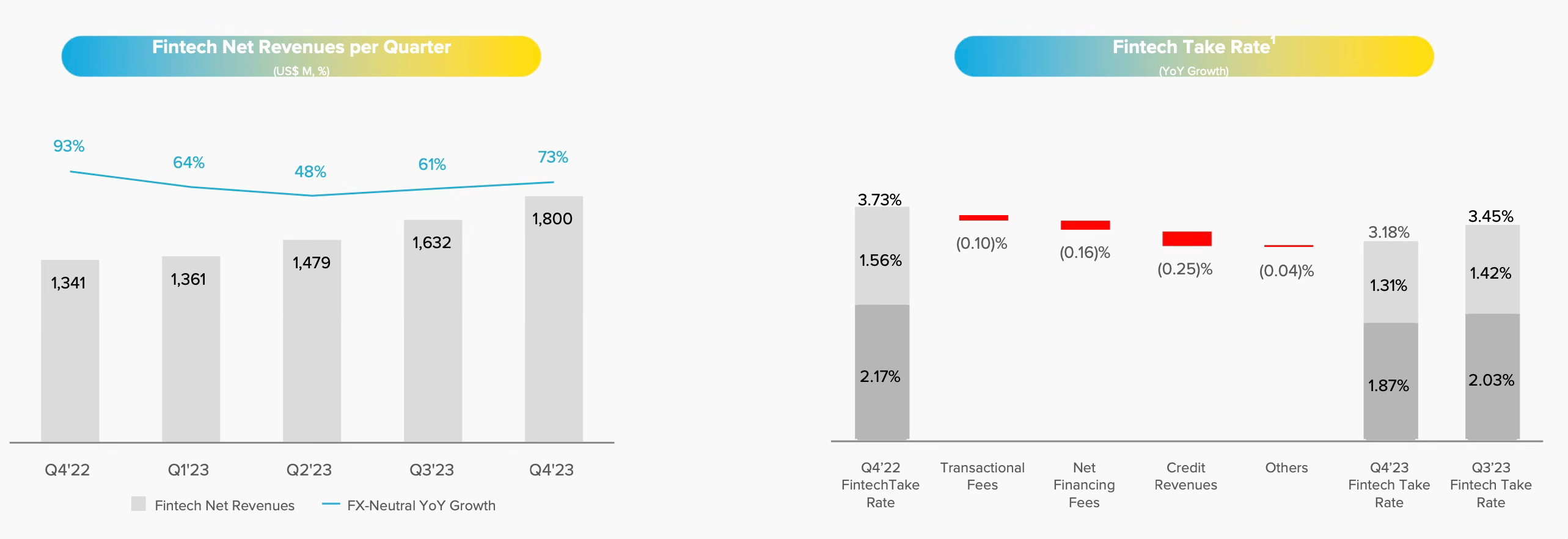 Fintech revenue was $1.8 billion, an increase of 73% YoY on an FX-neutral basis supported by a pick up in credit revenues, despite some pressure on monetization.