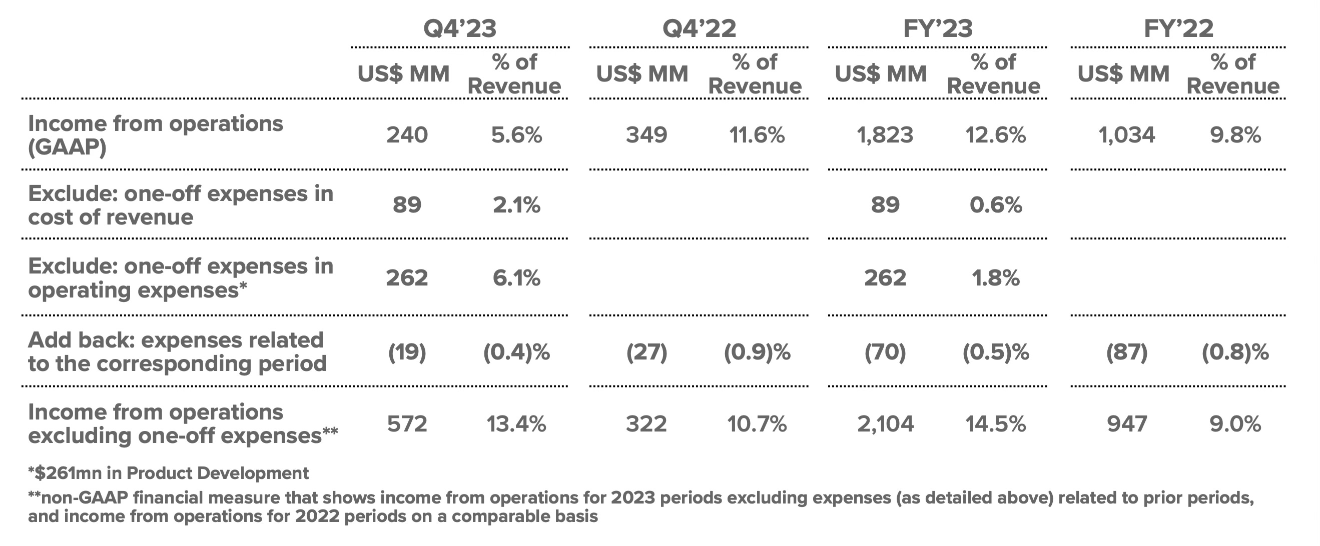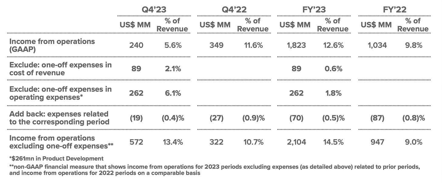Significant One-Off Expenses: The Q4 2023 operating margin experienced a negative impact due to one-off expenses equivalent to 8.2 percentage points.