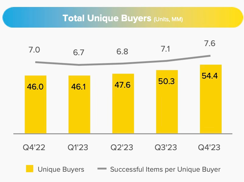The number of unique buyers grew by nearly 18% YoY, and growth remained at similar levels as the prior quarter, which demonstrated the highest growth since Q2 2021. All segments continue to show healthy trends, with Mexico posting the highest growth.