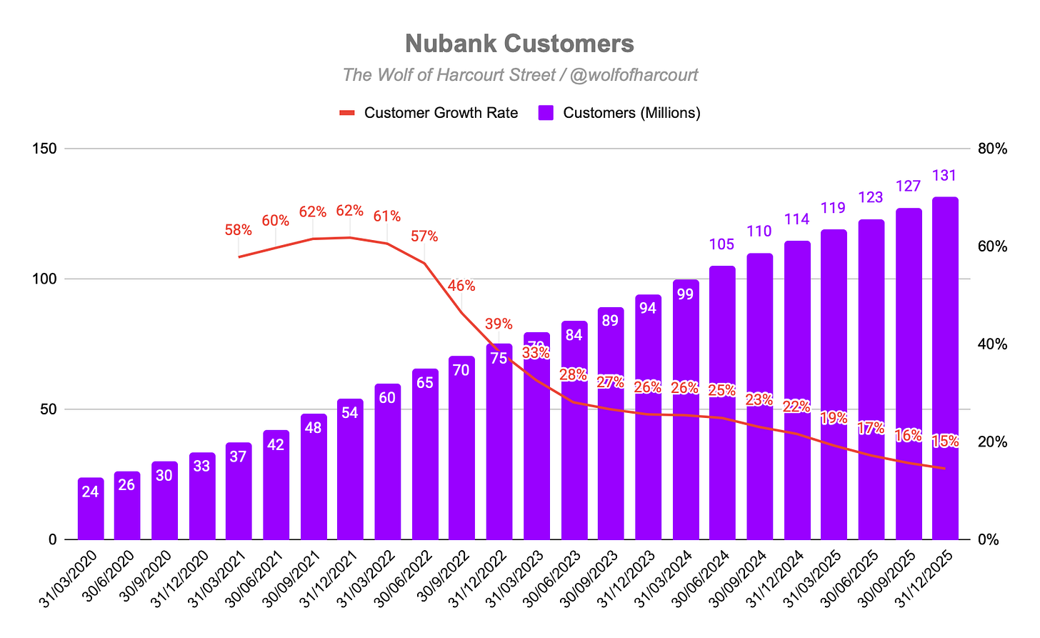 In a previous article, I modelled a credible path for NU to triple revenue by 2030 from its existing customer base alone. That thesis is steadily playing out. I recommend revisiting that piece if you missed it.