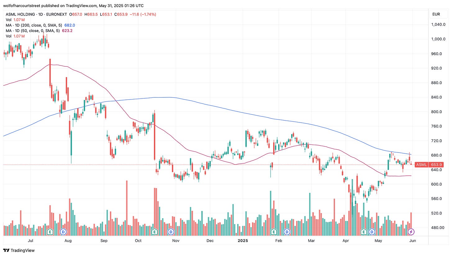 I plan to continue accumulating shares of ASML if it stays below €700. A boring but simple strategy.